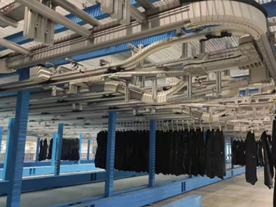 計(jì)算機(jī)集成控制服裝吊掛流水線系統(tǒng)有助于實(shí)現(xiàn)工序同期化,生產(chǎn)流水線上變換品種迅速靈…